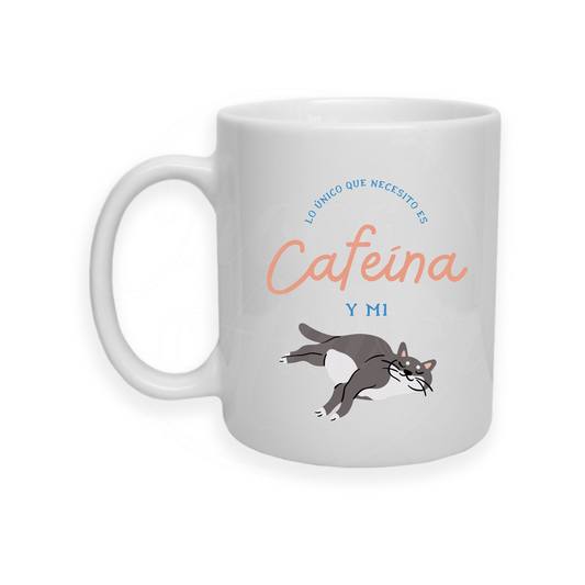 Taza 11 Oz. Cafeína y Mi Gato