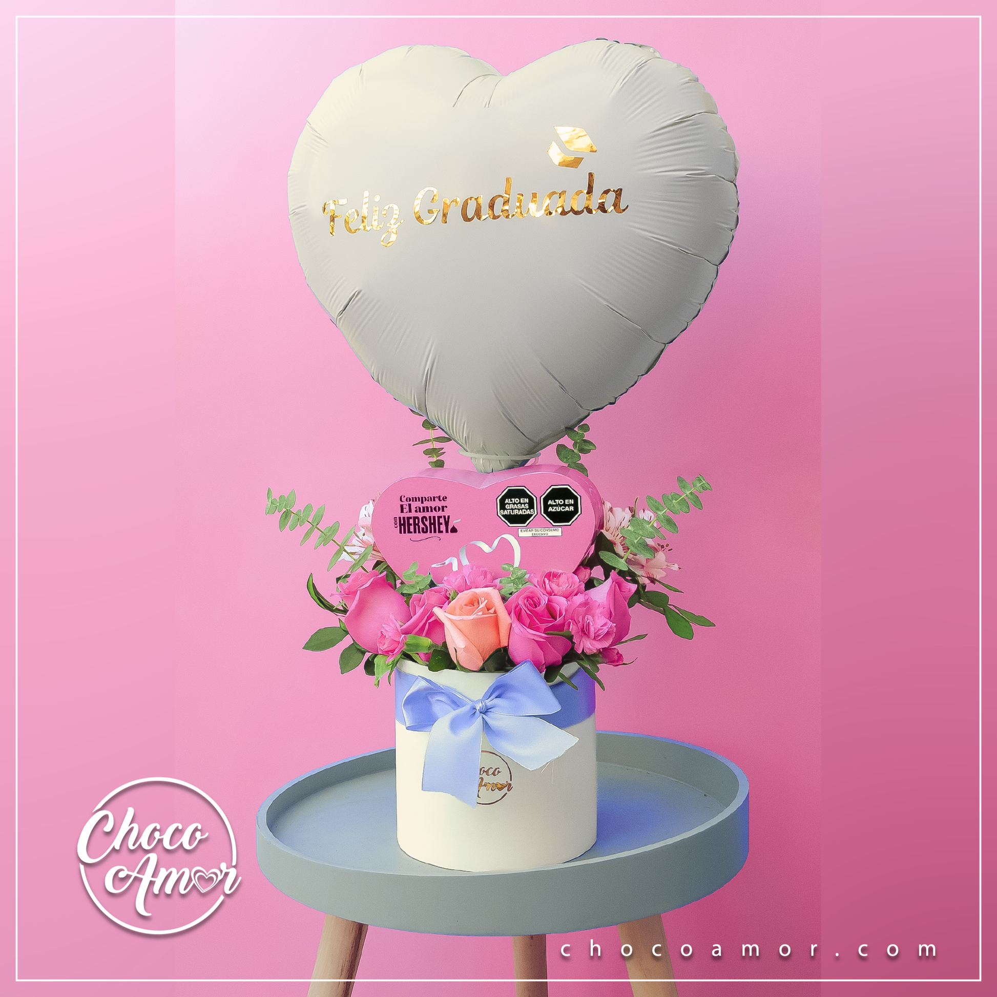 - Globo de corazón con frase de graduación.