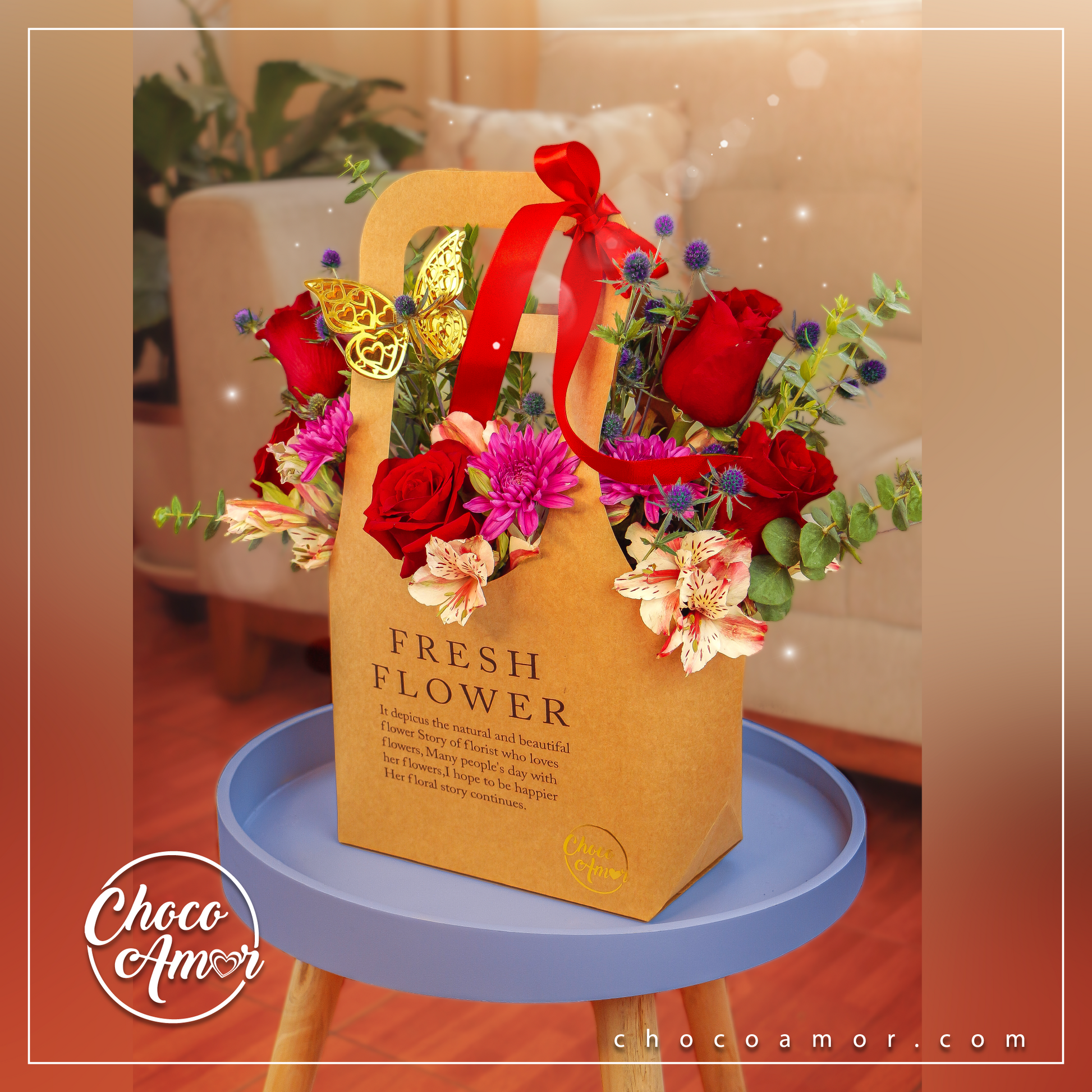 🌷 Esta bolsita floral combina la frescura de las flores con un diseño encantador, perfecto para expresar tu amor de forma original. Cada flor lleva un mensaje de cariño y gratitud que mamá atesorará.