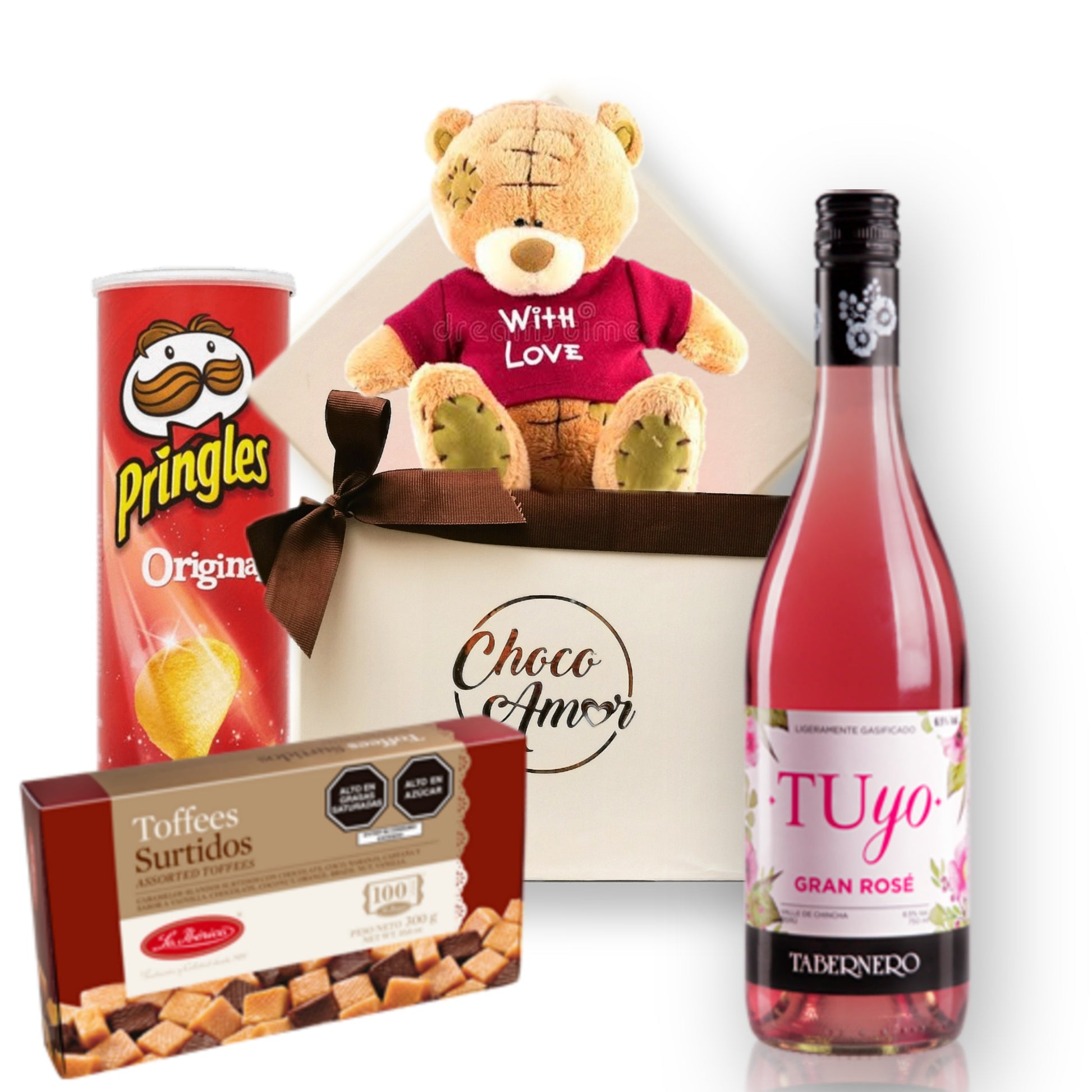 PACK OSITO CON VINO, TOFFEES, PRINGLES