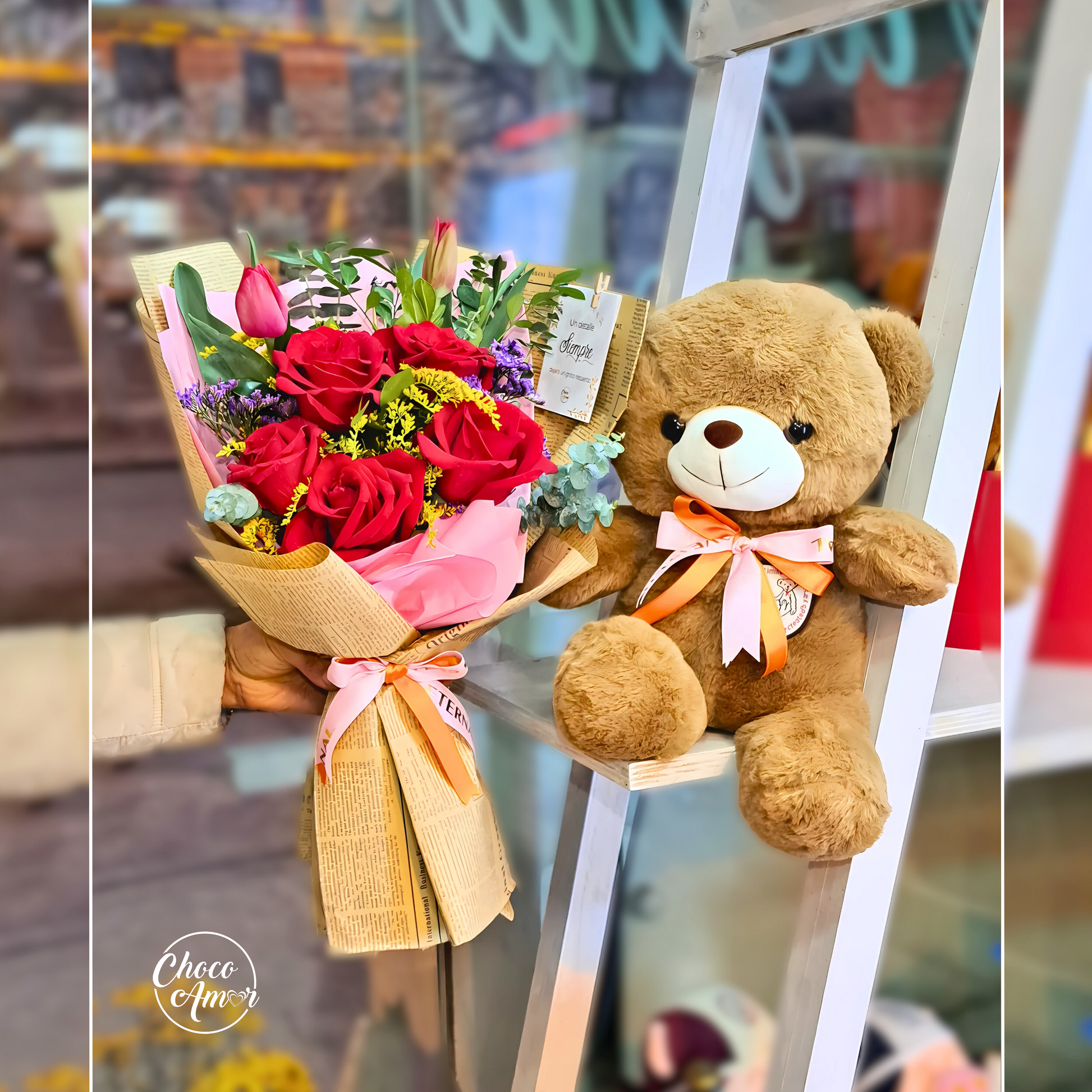 - Ramo de 02 tulipanes con 04 rosas. (color a elección)