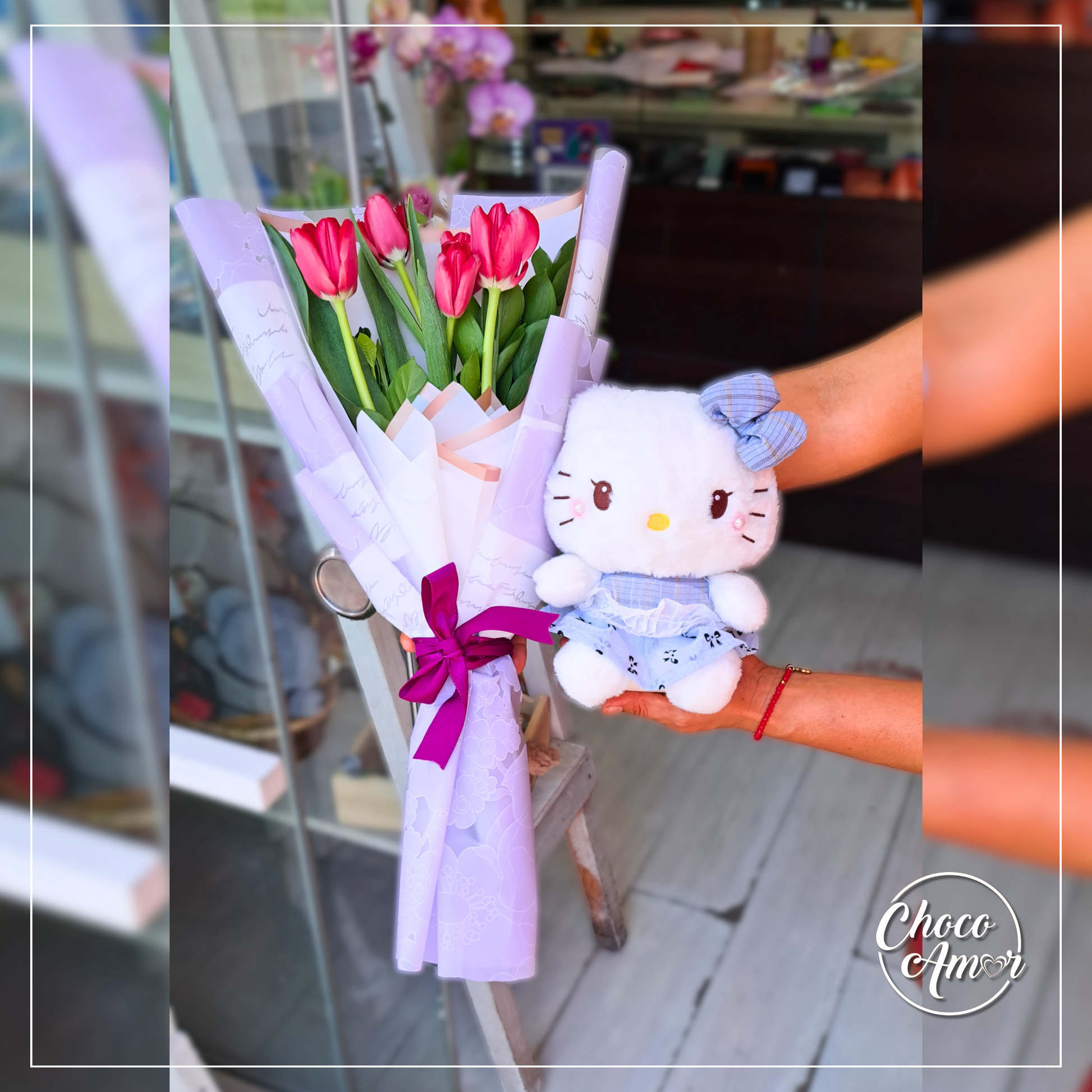 - Arreglo de 5 tulipanes.