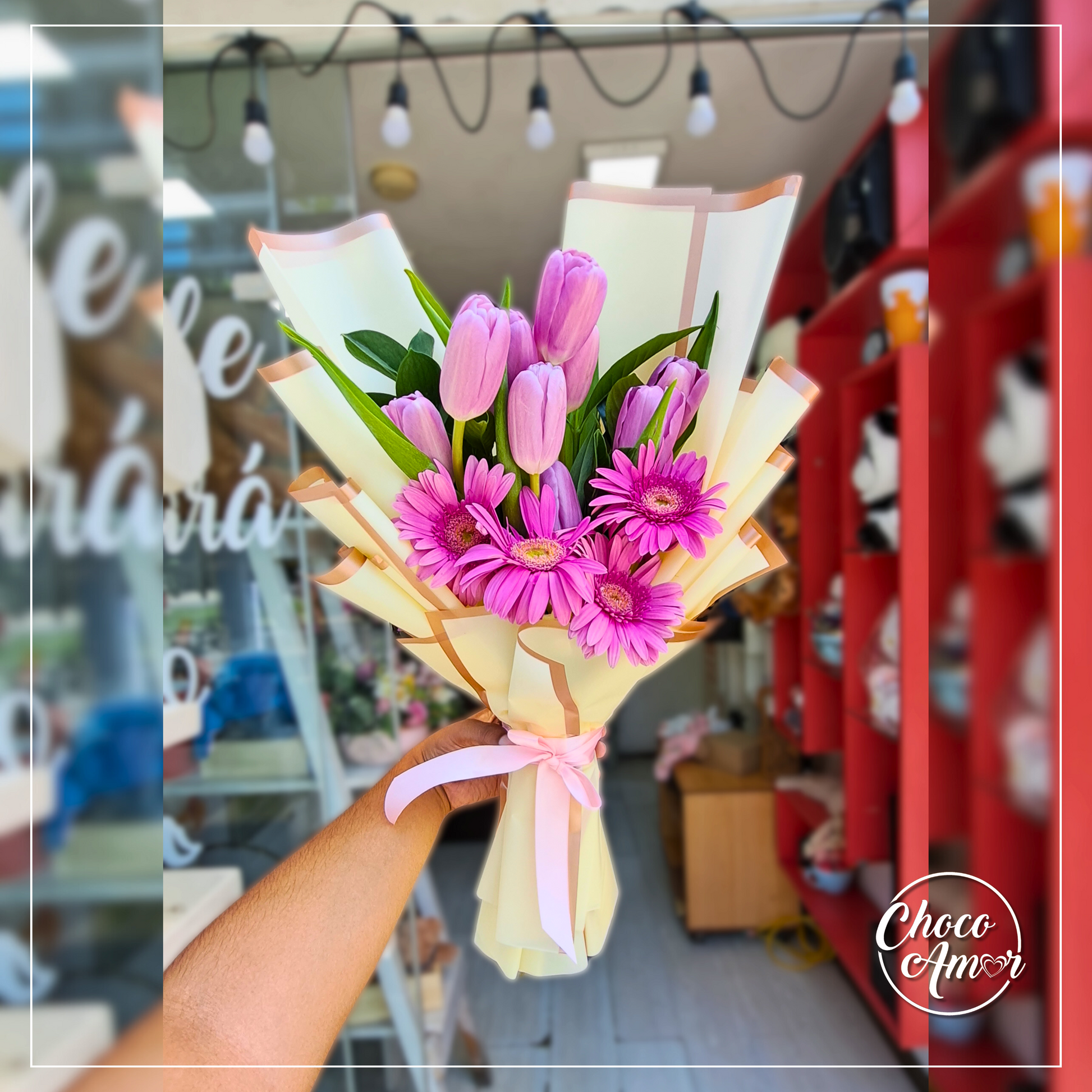 - Arreglo de 10 tulipanes con gerberas a combinación.